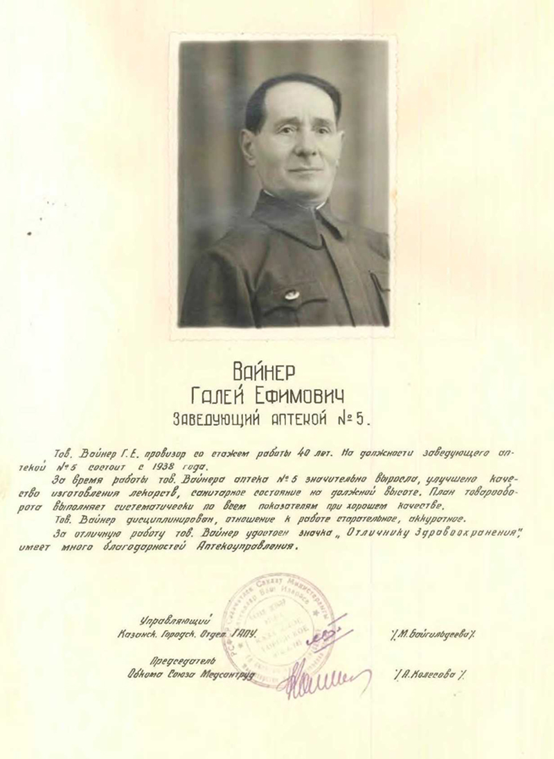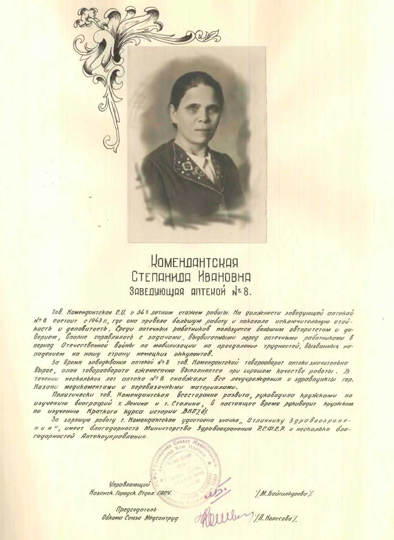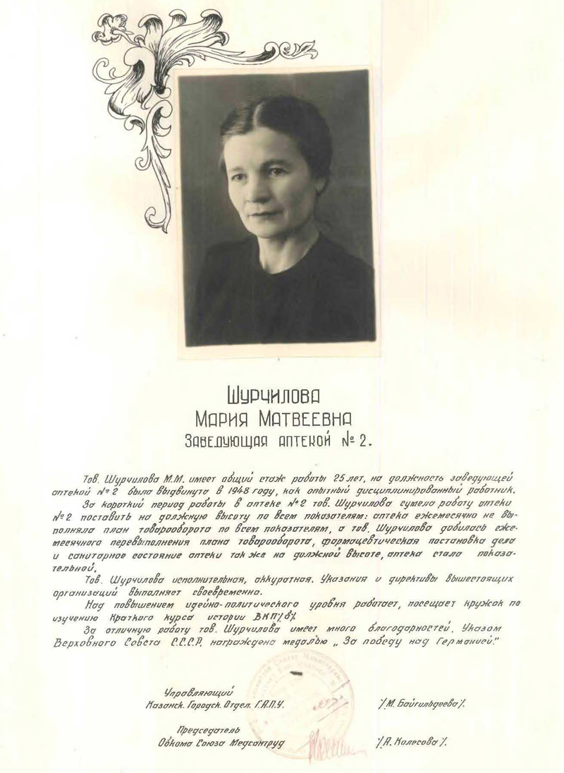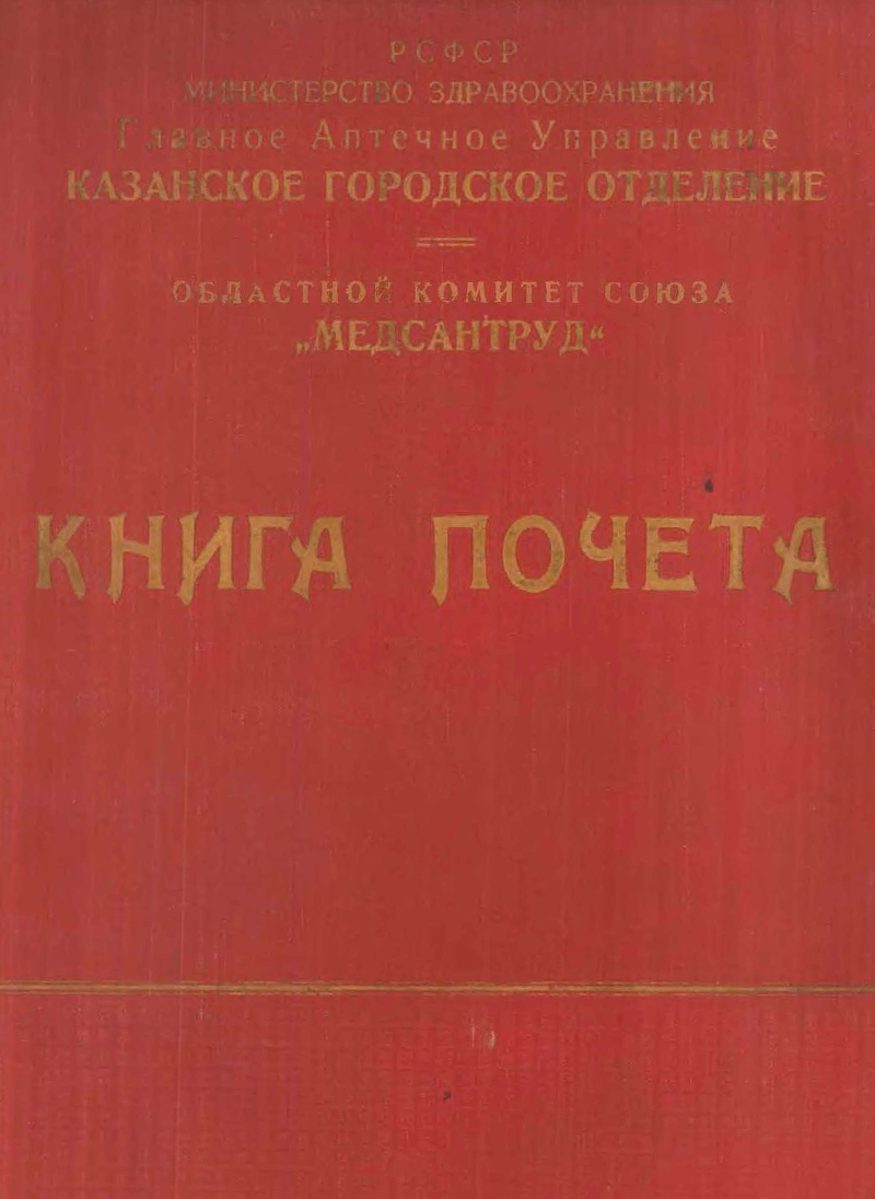 Книга Почета Главного Аптечного Управления Казанского городского отделения Минздрава РСФСР (5.02.1949 г., г. Казань)