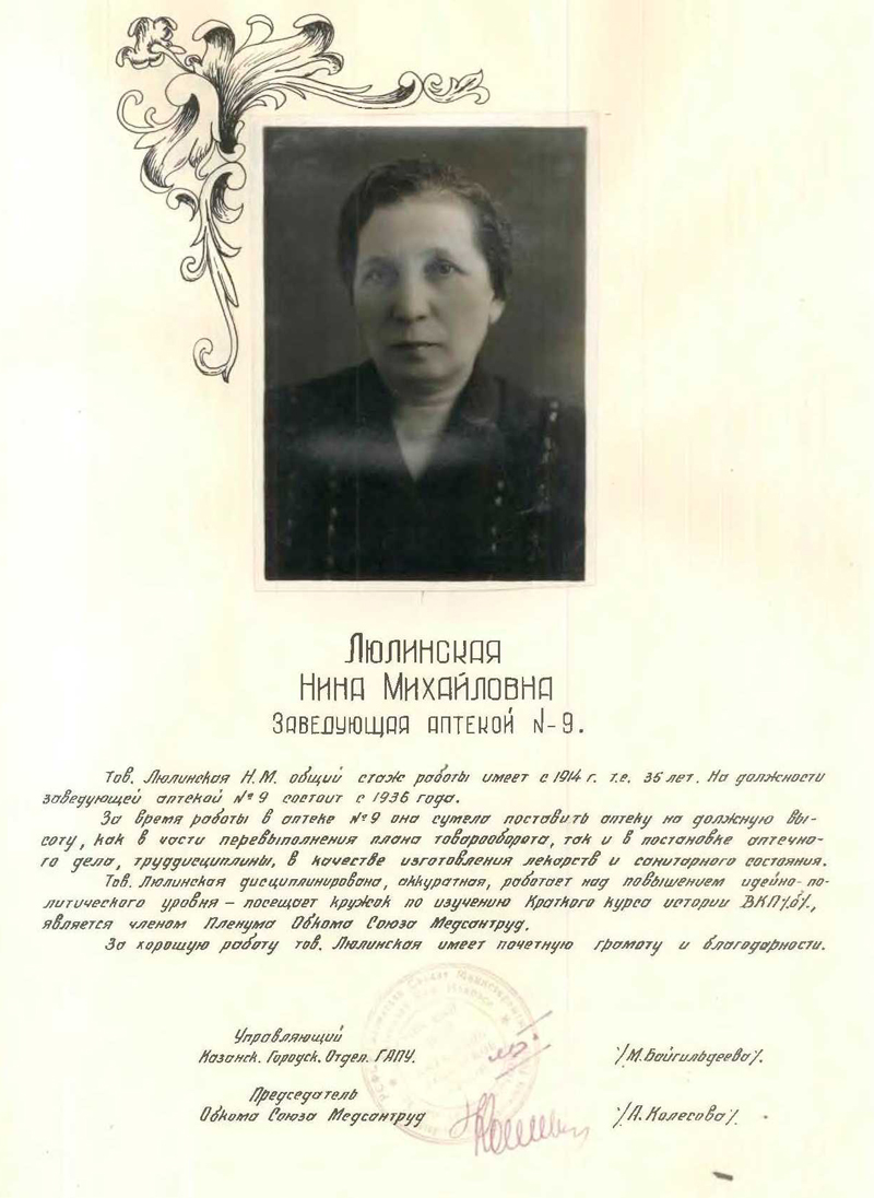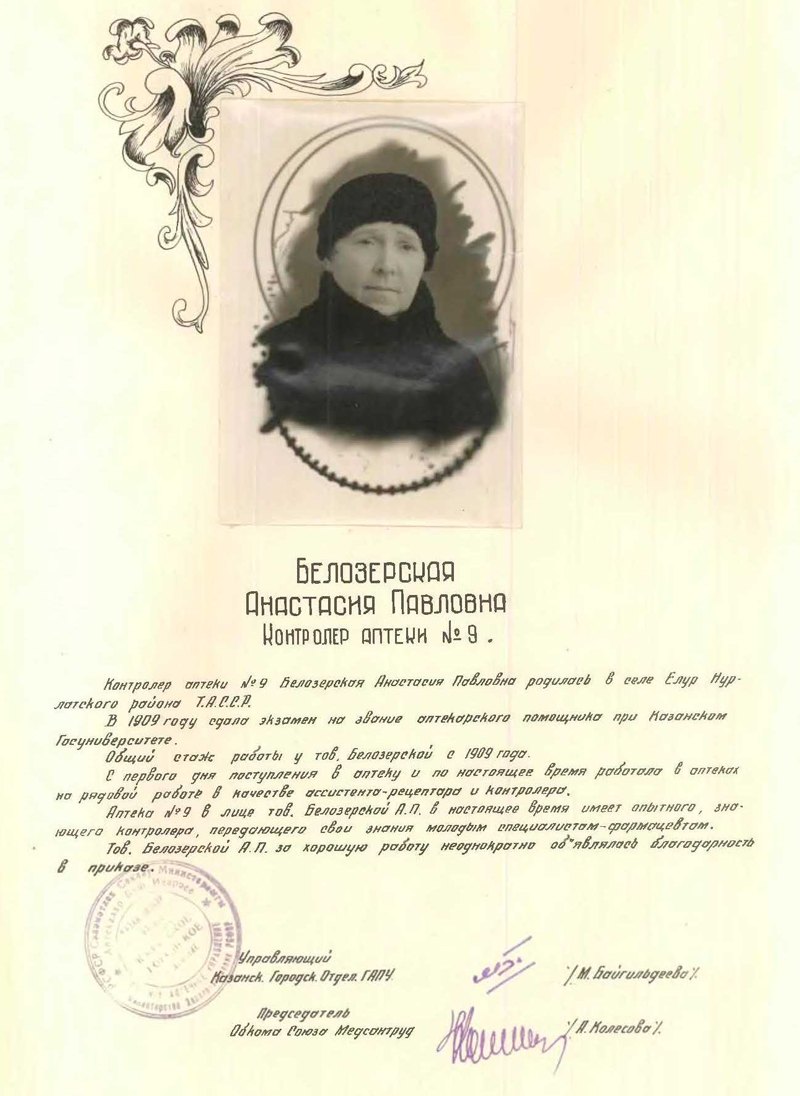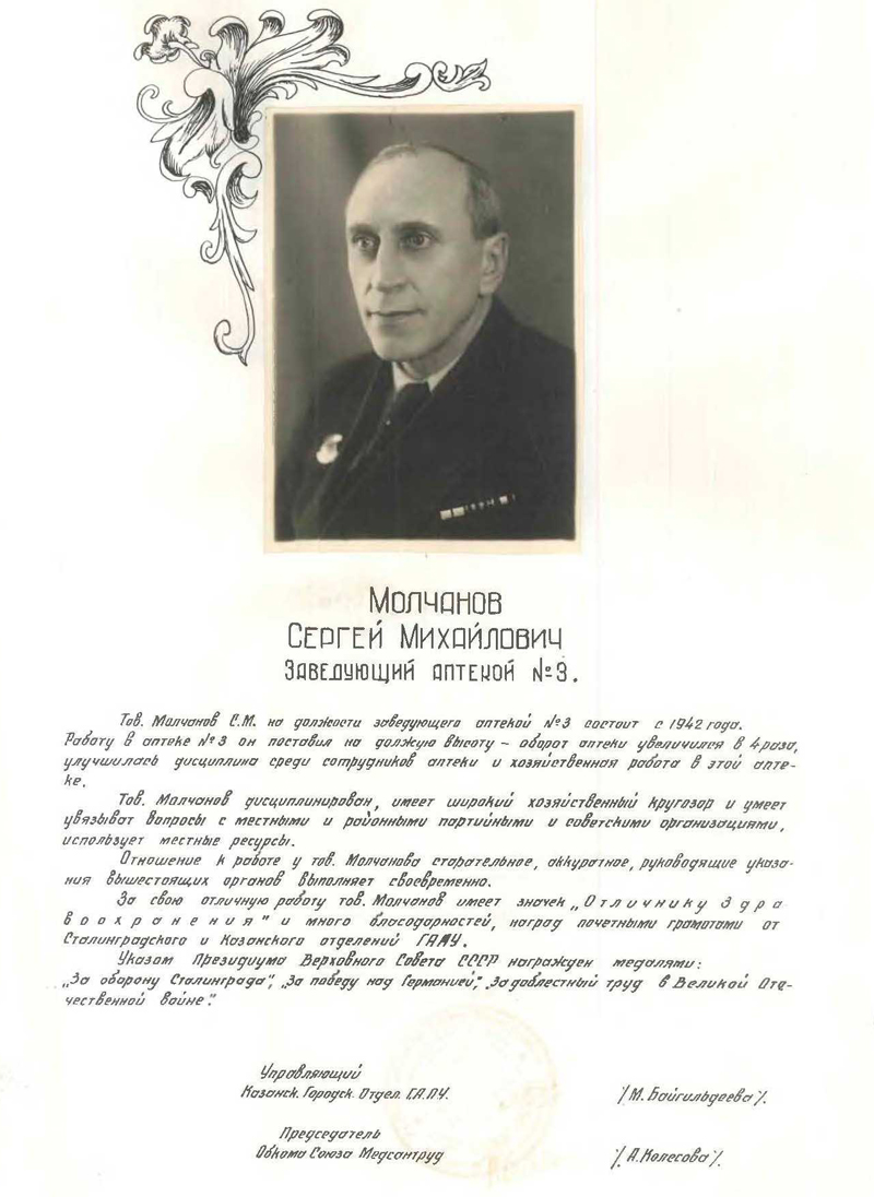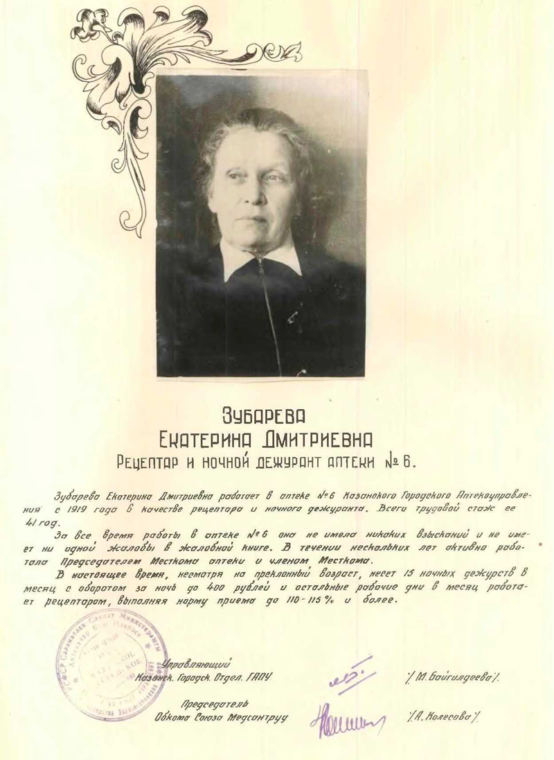 Книга Почета Главного Аптечного Управления Казанского городского отделения Минздрава РСФСР (5.02.1949 г., г. Казань)